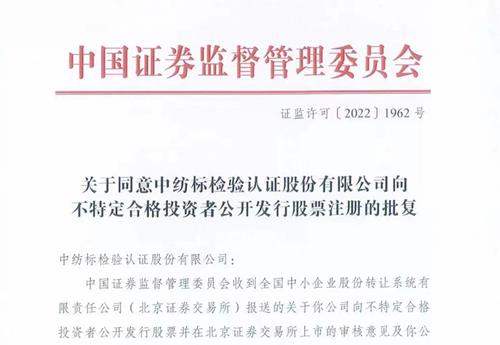 8月31日,据北京证券交易所官网公告,中国证监会同意best365官方网站检验认证股份有限公司向不特定合格投资者公开发行股票的注册申请。这意味着,best365官方网站登陆北交所再进一步,将在近期启动股票发行。