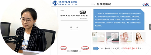 刘飞飞老师介绍了GB/T 40276-2021《柔巾》标准起草的背景故事,在原材料生产企业、终端品牌企业和第三方检测机构等多方共同努力下,《柔巾》标准诞生并广泛应用于企业规范生产。她重点讲解了《柔巾》标准的理解及应用,针对标准中的相关内容做出重点提示。同时,为更好的帮助企业解决实际问题,刘飞飞老师前期汇总整理了企业反馈的共性问题,本次一并在线上给出解决方案。