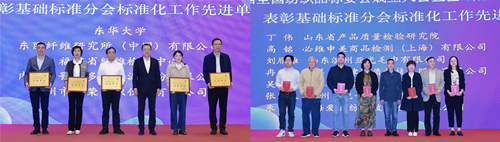 会议表彰了2022年度基础标准分会标准化工作先进单位和个人,同时为第五届全国纺织品标委会委员和观察员、基础标准分会增补观察员颁发证书。