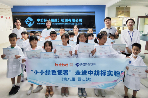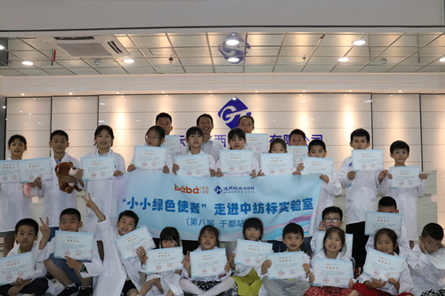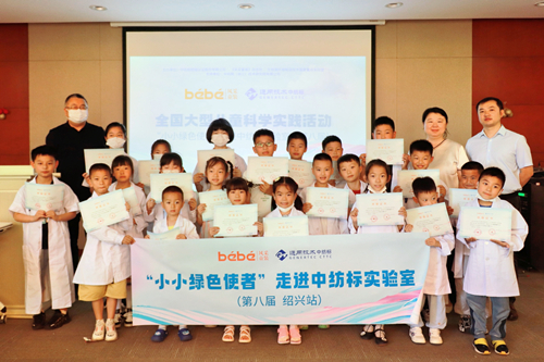 新的一批优秀“小小绿色使者”诞生了,他们通过学习纺织服装行业的基础知识,体验非遗植物扎染的创作,亲身体验动物纤维检测、色牢度检测,学习服装设计中应该注意的安全知识等,沉浸式体验了作为一名行业的“安全小卫士”应该具有的知识和责任感。