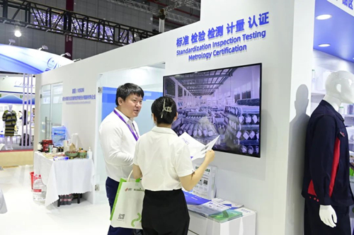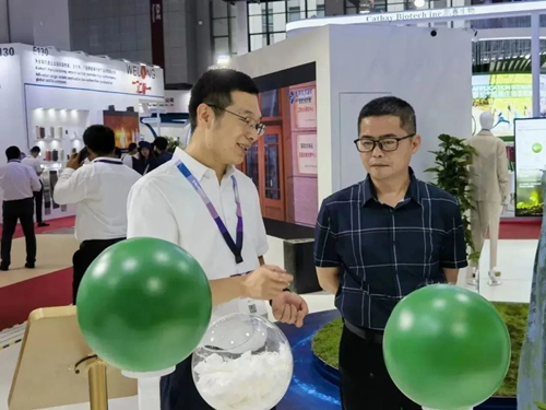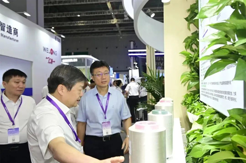 通用技术集团副总经理、党组成员贾大风现场实地调研考察通用技术新材展团,详细了解纤维新材料、化纤装备制造与工程服务、纺织新材料、标准检测与技术服务等业务板块参展情况,并对此次展示的绿纤、特纤、高纤产品及制品的技术创新点和经济效益及社会效益情况进行了深入沟通。
