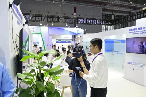 化纤成套装备VR体验:通用技术新材旗下的化纤装备制造企业具有50余年生产化纤成套设备的经验,提供集智能装备、设计咨询为一体的化纤纺织工程系统解决方案,产品性能达国际先进水平,应用于各类纤维领域,可满足国内外市场需求。展会现场,通用技术新材为参展观众提供VR虚拟现实体验,让观众身临其境地感受化纤纺织装备生产全流程。
