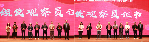会议表彰了2023年度纺织品标准化工作的先进单位和个人,同时为新增补的委员、观察员和认可标准验证实验室单位颁发了证书。
