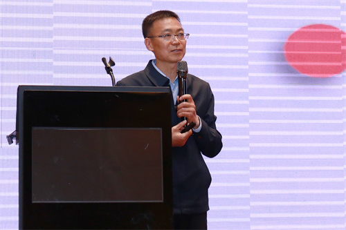 泉州市市场监督管理局调研员刘华致辞。刘华介绍了泉州的纺织服装品牌,注重品牌引领产业升级,希望纺织领域专家支持泉州纺织行业发展,助力泉州纺织业高端化、智能化、绿色化、融合化发展。