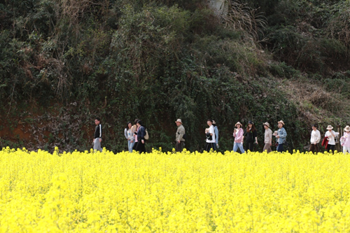 伴着和煦的春风,满载着职工的大巴车从公司出发。一路上大家欢声笑语、其乐融融,大概一个半小时车程后,大家到达了此次活动的第一站——陈蔡千亩油菜花田。景区内盛开的油菜花竞相争艳,散发出浓浓春意。大家卸下平日工作中的紧张和疲惫,漫步于油菜花田,纷纷拿出相机拍照留念,尽情享受春光里的无限美好。