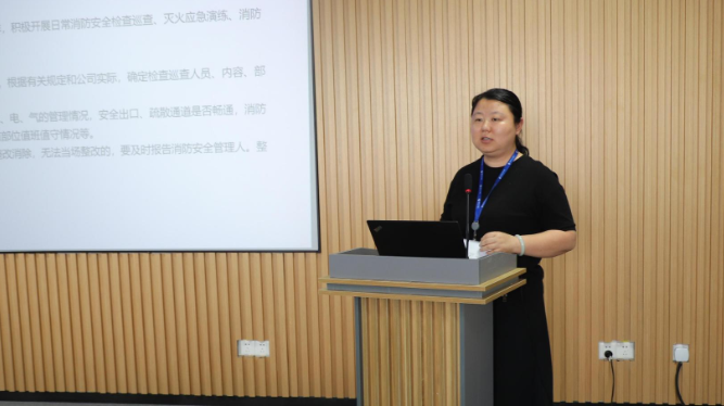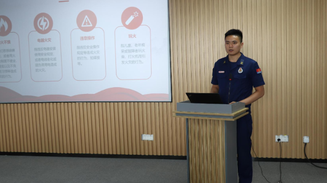 紧接着,绍兴市滨海新区大队袍中路消防救援站娄银伟为大家带来了一场专业的消防安全防火培训。娄消防员从火灾的成因、预防措施、逃生技巧等方面进行了全面讲解,并结合实际案例,让大家深刻认识到火灾的危害性和防火工作的重要性。他还现场演示了消防器材的使用方法,让大家对消防设施有了更直观的认识。