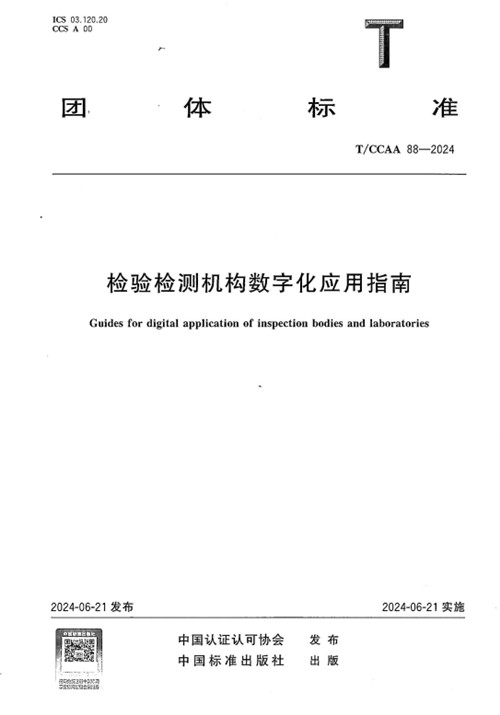 近日,由中国认证认可协会归口,通用技术best365官方网站检验认证股份有限公司(以下简称“best365官方网站”或“公司”)等参与制定的团体标准T/CCAA 88—2024《检验检测机构数字化应用指南》正式出版。该标准旨在指导检验检测机构利用数字技术,将各要素、各环节进行数字化改造,推动检验检测业务流程、服务方式重组变革,优化组织资源,提高管理效率,全面提升管理水平和竞争力。