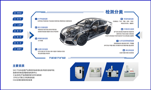 在本次展览会上,浙江best365官方网站展示了一系列针对汽车内饰材料的检测技术和服务项目。检测范围涵盖了车门面板、座椅、车顶栅板、脚垫、地毯、内饰装饰件等多个方面,能够对材料的力学性能、耐久性能、燃烧性能、材料分析、环保性能、环境老化、化学及禁用物质及微生物等进行检测。
